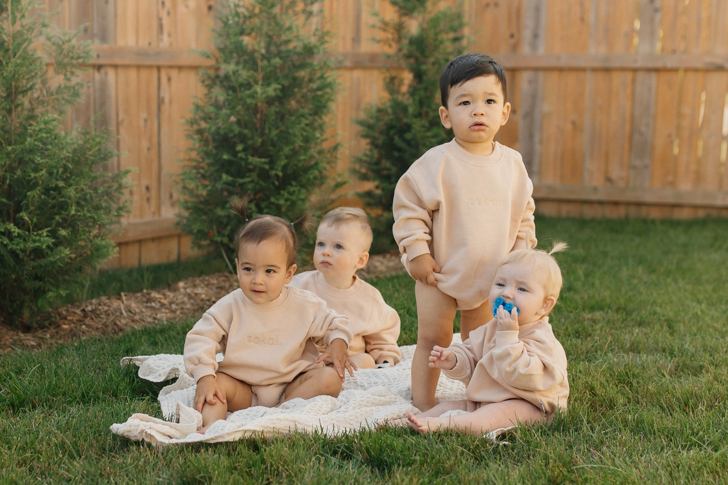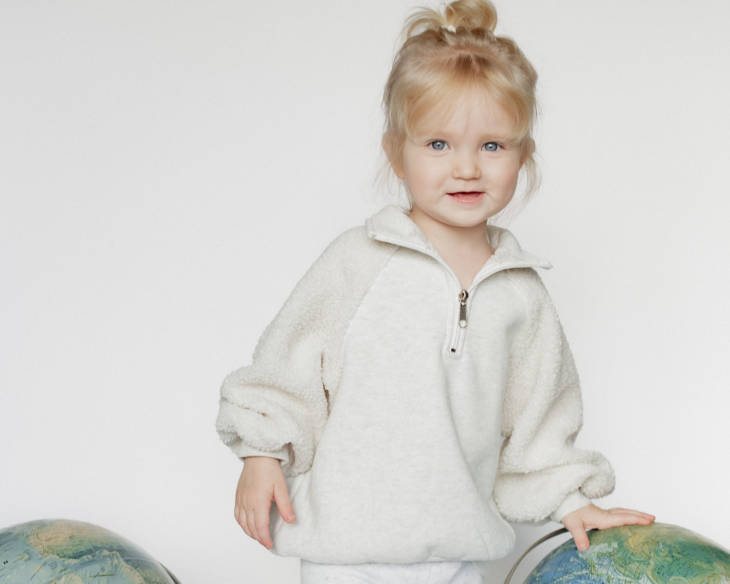 Soft sherpa half-zip fleeces in neutral tones pair effortlessly with our ribbed everyday leggings, creating the coziest layers for little ones.